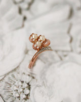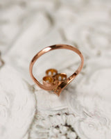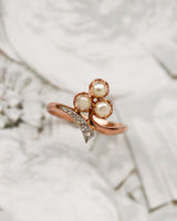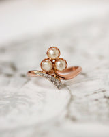 Bague Art Nouveau Trèfle Or Rouge , Platine, perles fines