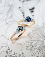 - Pierre : Saphir bleu 0.86 ct ; Diamants pavage (8) 0,10 ct au total