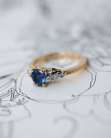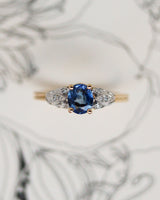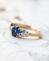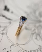 Bague Benoit Joaillier "Solitaire Feuilles" Or Jaune et Blanc Saphir Bleu 0.86 ct