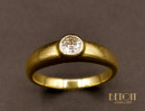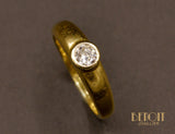 Bague jonc en or jaune 750 millièmes surmontée d'un diamant taille brillant (estimé ~H/I-SI2) serti en clos.