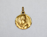 Médaille de la Sainte Vierge en or jaune 750 millièmes de forme ronde avec bordure. Bélière simple.