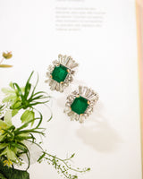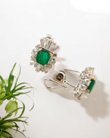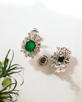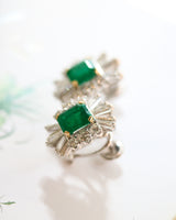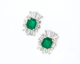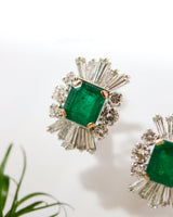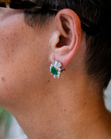 Paire de boucles d'oreille 1950 cocktail Emeraude et Diamants