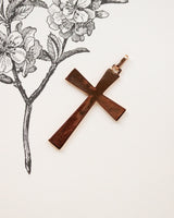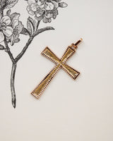 Pendentif Grande Croix Latine plate Ciselée Or rose et jaune