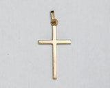 Petite Croix latine carrée en or jaune 750 millièmes creu entièrement ciselée sur le devant et sans bordure, le dos est lisse. La bélière est simple.