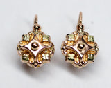 Paire de dormeuses anciennes en or creux rose et jaune 750 millièmes, se composant de différentes formes superposées dans un style floral. Ce bijou présente quelques marques d'usure non réparable du fait qu'il soit creux. Un petit cadeau pour une douce occasion.
