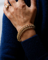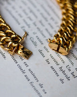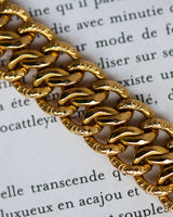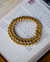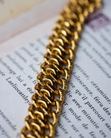 Bracelet en or rose 750/e composé de deux rangs de mailles creuses martelées en extérieur s'imbriquant les unes dans les autres pour former une maille Américaine. Fermoir à cliquet avec huit de sécurité. Bijou en bon état