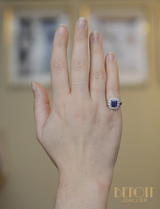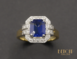 Bague Rectangle Pans Coupés Style Art Déco Saphir