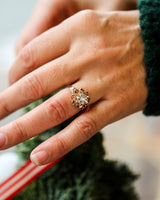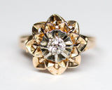 Bague Art Déco Florale Or Rose et Blanc Diamant