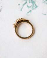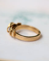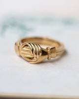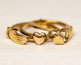 Bague de Foi en or jaune 750/e, composée de trois anneaux, qui rassemblés, dessinent deux mains jointes protégeant un cœur (sur l'anneau de centre). Bijou en bon état.