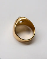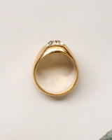 Bague jonc en or jaune 750 millièmes, ornée d'un diamant taille ancienne taille coussin (Teinté avec légère inclusions) serti en clos. Corps de bague large et fin en épaisseur. Un bijou intemporel en bon état.