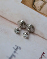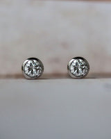 Paire de puce Création Benoît Joaillier en or blanc 750/e, ornées d'un diamant taille brillant serti en clos chacune. Système de fermoir smartlock en or blanc 750/e.