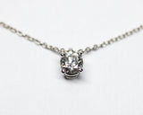 Pendentif solitaire en or blanc 750/1000e, composé d'un diamant taille moderne d'environ 0,42 carat serti sur quatre griffes, suspendu sur une chaîne en or blanc 750/1000e avec anneaux de réglage à 40 et 45 cm. Fermoir mousqueton.