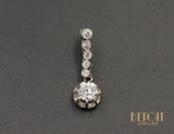 Pendentif en platine, composé d'une succession de cinq diamants taille ancienne, articulés, sur serti clos avec filet mille grains. A l'extrémité, un diamant taille ancienne estimé environ G-Si1 ou VS, serti sur chaton huit griffes, termine le motif. Bélière invisible en or blanc 750 millièmes.