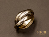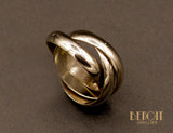 Bague en or blanc 750/1000e, composée de trois anneaux, signée Cartier, modèle Trinity GM. Gravée sur un anneau "750 Cartier 47 1999", numéro de série O5129U. Vendue avec son certificat et son écrin d'origine.