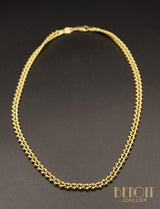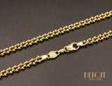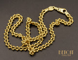 Chaine vintage en or jaune 750 millièmes composée d'un succession de maillons ovales à cheval, ponctués d'anneaux de chaque côté, originaux. Bijou en excellent état.