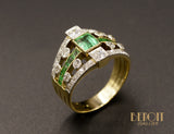 • Pierres :  Émeraude centrale ~1 ct, Diamants centraux ~0,20 ct, pavage diamants ~0,30 ct