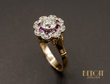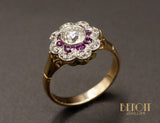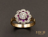 Bague Marguerite Art Déco Diamant et Rubis calibrés