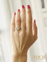 - Pierres : Diamants principaux ~0,60ct chacun, entourage diamants ~0,60 ct au total