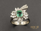 Bague Art Déco Emeraude Diamant