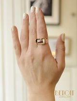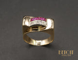 Bague Tank Or Rose Diamants Rubis Verneuil