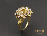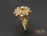 Bague Fleur Citrine et Diamants Or Jaune