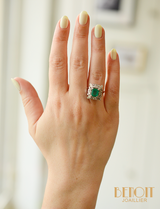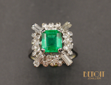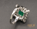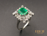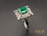 Bague Cocktail Rectangulaire style Art Déco Emeraude et Diamants