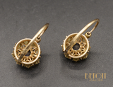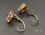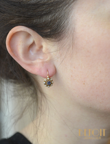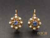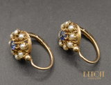Paire de Dormeuses Or Rose Saphir et Perles fines