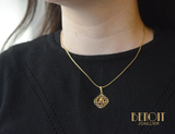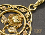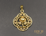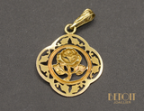 Pendentif en or jaune 750 millièmes, quadrilobe, en motif ajouré, entourant une rose. Chaine non fournie.