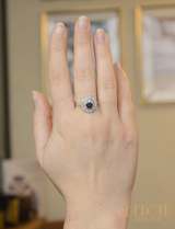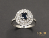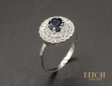 - Pierres : Saphir ~0,83 ct ; Entourage 42 Diamants ~0,78ct au total