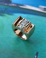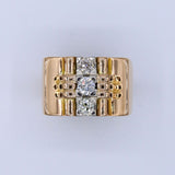Magnifique Bague Tank en or rose 750 millièmes, orné en son centre d'une ligne de Diamants taille ancienne, sertis sur griffes triangles en platine, entre deux tubes cylindriques, épaulé de chaque côté par trois godrons. Une très belle représentation de l'époque Tank, avec un magnifique volume imposant avec tête de bague évidée pour plus de légèreté.