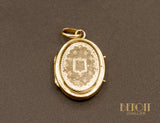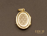Pendentif en or rose 750 millièmes ouvrant orné de belles gravures devant et au dos. Systèmes ouvrant par une charnière sur le côté associée à deux bielles facilitant l'ouverture. Bijou fin et délicat.