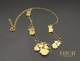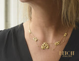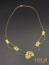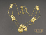 Collier Draperie en or jaune 750/1000e composé de maillons ouvragés de roses. Entre les maillons, sont suspendues, de petites chaînes ornées chacune d'une petite perle fine blanche. Bijou de collection, fragile. Très bel effet porté.