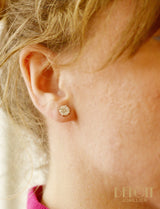 • Pierres : Pour chaque puce ~0,50 ct soit 4 diamants navettes ~0,32 ct et 1 Diamant princesse ~0,18 ct