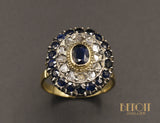 - Pierres : Saphir central ~0,50 ct, entourage saphirs ~1,40 ct , entourage diamants ~0,20 ct