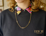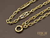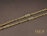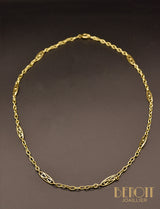 Collier en or jaune 750 millièmes composé d'une alternance de maillons, décorés d'un noeud, et d'une succession d'anneaux ovales. Fermoir rond en anneau ressort. Possibilité de porter le fermoir à l'avant en y accrochant un charm.