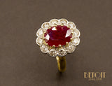 • Pierres : Rubis ovale ~3,50 cts, Diamants ~1,20 cts