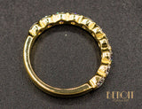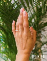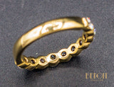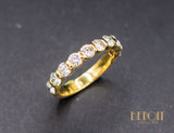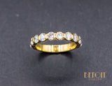 Alliance en or jaune 750/1000e sertie sur toute sa moitié de diamants brillants estimés environ H-SI pour un total d'environ 1,5 carat, sertis par une bande entre chaque diamant. Corps de bague demi-jonc. Poinçon aigle.