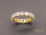Alliance en or jaune 750/1000e sertie entièrement de 16 diamants pour un poids total d'environ 3,50 carats au total. Diamants estimés F/G-VS, sertis par deux griffes entre chaque pierre.