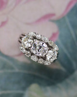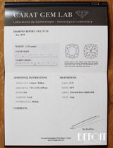• Pierres : Diamant central taille coussin certifié CGL G-SI1 1,35 ct / Diamants ronds (2) ~0,60 ct chacun / pavage diamants ~0,60 ct au total