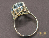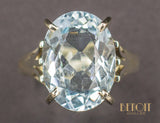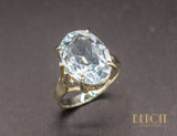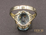 Bague en or blanc 750/1000e ornée d'une aigue-marine bleu clair ovale d'environ 8 carats sertie sur quatre griffes. De part et d'autre de la pierre, l'anneau se divise en 3 fils. Bijou élégant.