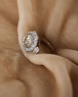 - Pierre : Diamant central 1,22ct certifié HRD N° 250000030934 G-Si2 / 2 Diamants trapèze 0.13ct au total / pavage brillants (16) 0.36 ct au total
