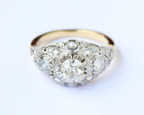 Bague Dôme Art Déco Or jaune Platine et Diamants