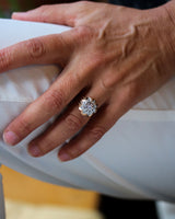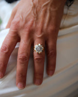 - Pierres : Diamant central ~0,10ct au total ; Entourage diamants taille rose