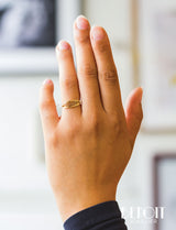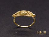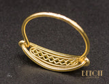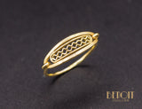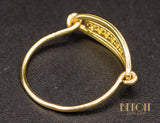 Ancien maillon de chaîne des années 1900 en or jaune 750/1000e ouvragé de filigrane, transformé en bague par nos soins. Anneau simple neuf en or jaune 750/1000e.