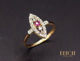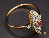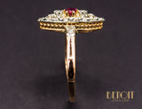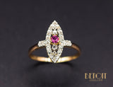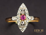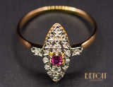 Bague Navette XIXe Diamants Rubis
