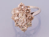 Bague or blanc 18 carats, diamants dont diamant centrale navette. fabrication 1950