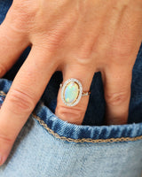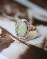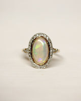 - Pierres : Opale ~12x8mm ; Entourage Rose de diamants