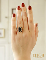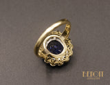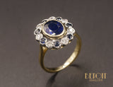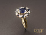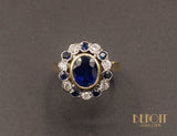 • Pierres :  Saphir central ~ct, entourage saphirs ~0,40 ct, entourage diamants ~0,35 ct