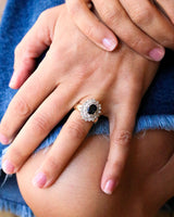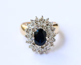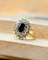 Bague Pompadour Vintage Saphir et Double Entourage Diamants