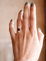 - Pierre : Grenat ~1,20 ct (7 x 6 mm) / Diamants taille ancienne 2x ~0,35 ct
